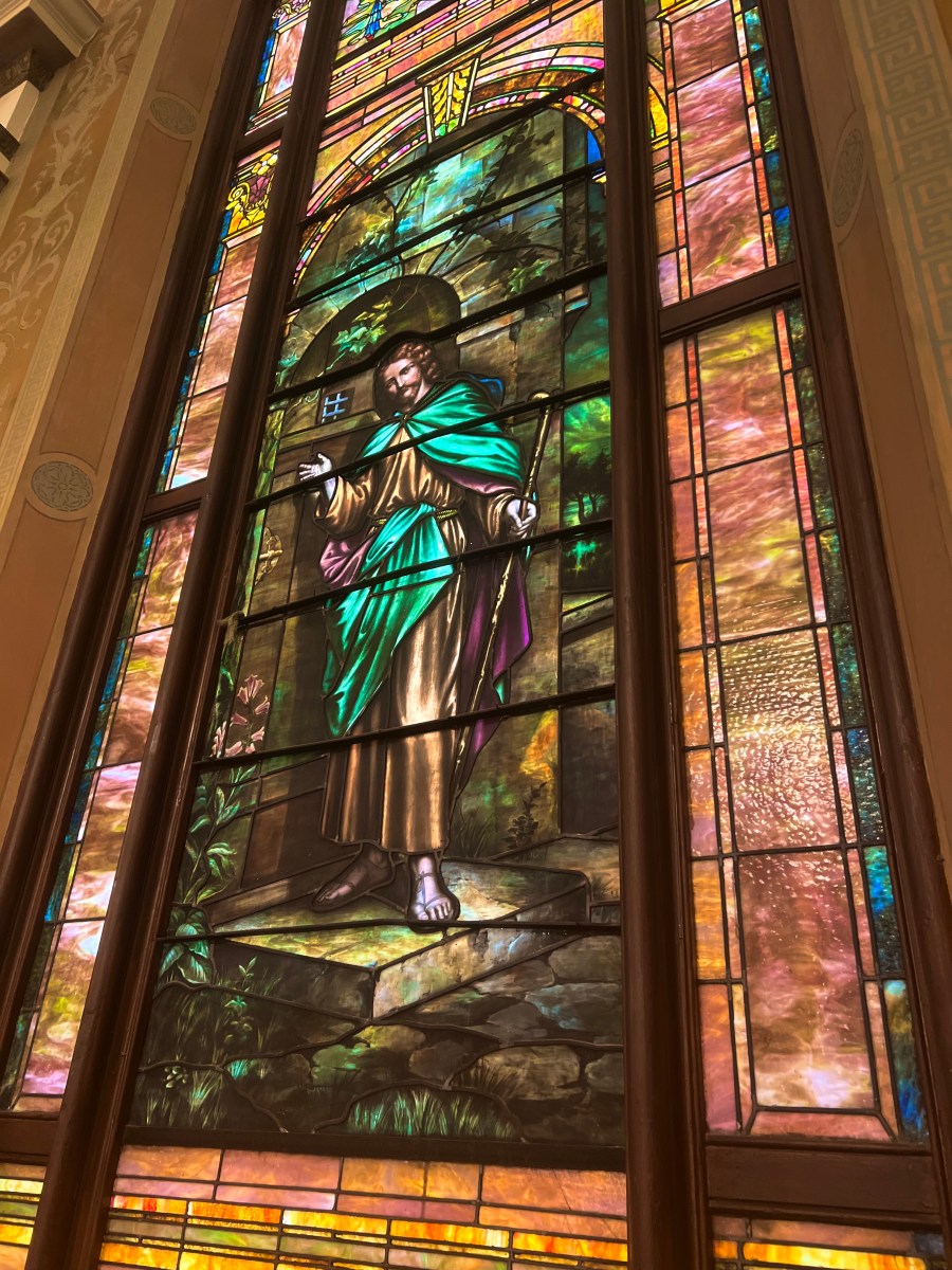 IMG_0426 Published March 18, 2024 at 3024 × 4032 in Peaceful, but not a Pushover Jesus in his coat and cloak, in a window at Calvary